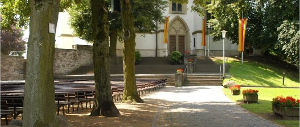 Die breit gelagerte Stufenanlage vor der Kreuzkirche hatten der damalige Oelde Amtsbürgermeister Hermann Johenning und einige kundige Theaterleute 1925 als geeigneter Ort für Freilichtspiele entdeckt.