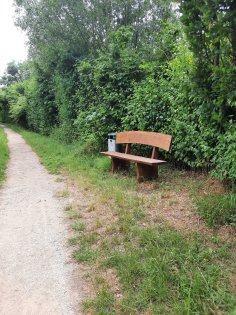 Das Bild zeigt die Bank am Fitnessparkur - eine von 4 Bänken, am 26.11.2021 einbetoniert. Inzwischen hat die Gruppe etwa 70 Bänke gefertigt und aufgestellt.
